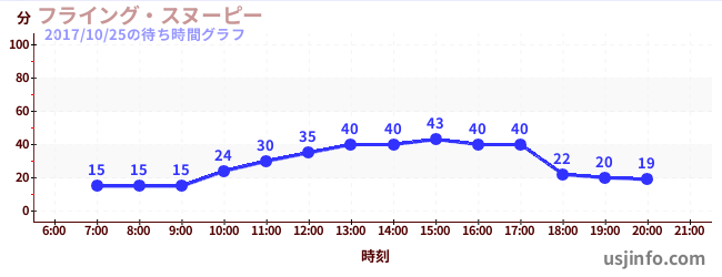 • フライング・スヌーピー$B$N(B2017年10月25日の待ち時間