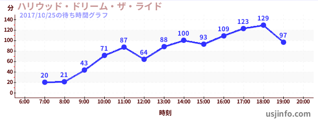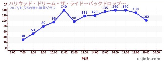 • ハリウッド・ドリーム・ザ・ライド〜バックドロップ〜$B$N(B2017年10月25日の待ち時間