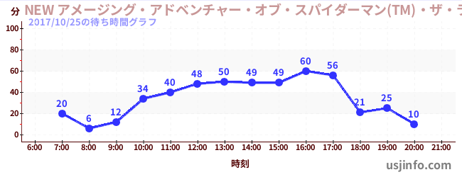 • NEW アメージング・アドベンチャー・オブ・スパイダーマン(TM)・ザ・ライド 4K3D$B$N(B2017年10月25日の待ち時間