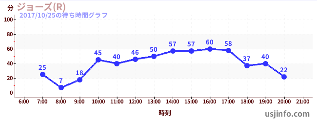 • ジョーズ(R)$B$N(B2017年10月25日の待ち時間