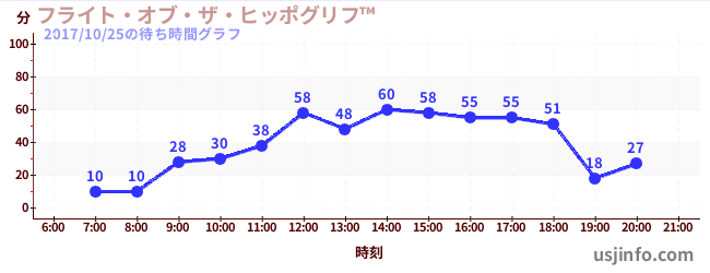 • フライト・オブ・ザ・ヒッポグリフ™$B$N(B2017年10月25日の待ち時間