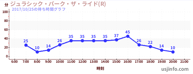 • ジュラシック・パーク・ザ・ライド(R)$B$N(B2017年10月25日の待ち時間