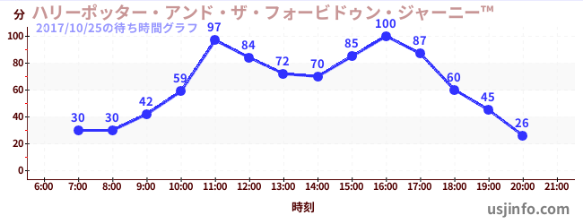 • ハリーポッター・アンド・ザ・フォービドゥン・ジャーニー™$B$N(B2017年10月25日の待ち時間