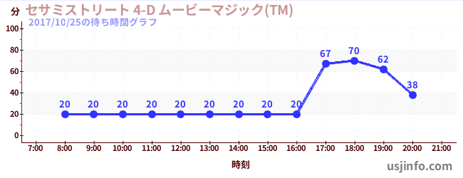 • セサミストリート 4-D ムービーマジック(TM)$B$N(B2017年10月25日の待ち時間