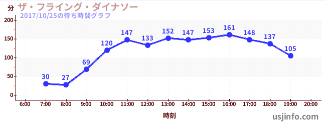 • ザ・フライング・ダイナソー$B$N(B2017年10月25日の待ち時間