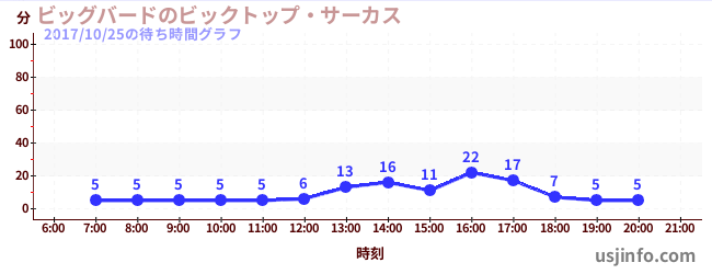 • ビッグバードのビックトップ・サーカス$B$N(B2017年10月25日の待ち時間