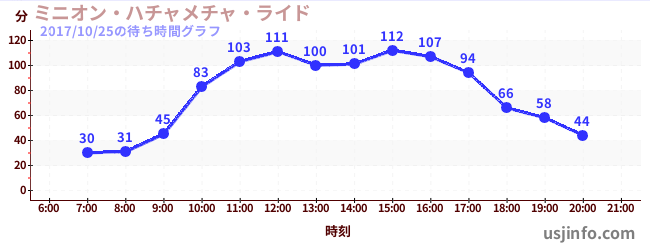 • ミニオン・ハチャメチャ・ライド$B$N(B2017年10月25日の待ち時間