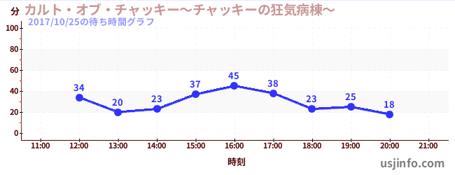 • カルト・オブ・チャッキー~チャッキーの狂気病棟~$B$N(B2017年10月25日の待ち時間