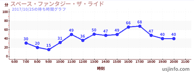 • スペース・ファンタジー・ザ・ライド$B$N(B2017年10月25日の待ち時間