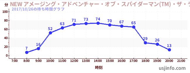 • NEW アメージング・アドベンチャー・オブ・スパイダーマン(TM)・ザ・ライド 4K3D$B$N(B2017年10月26日の待ち時間