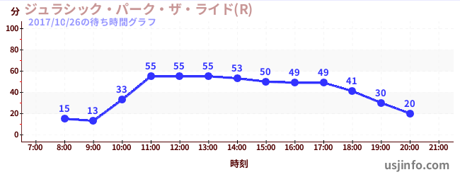 • ジュラシック・パーク・ザ・ライド(R)$B$N(B2017年10月26日の待ち時間