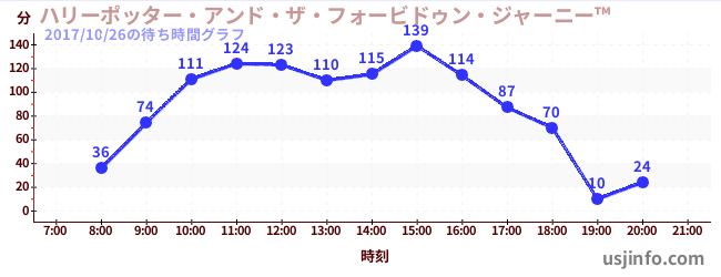 • ハリーポッター・アンド・ザ・フォービドゥン・ジャーニー™$B$N(B2017年10月26日の待ち時間
