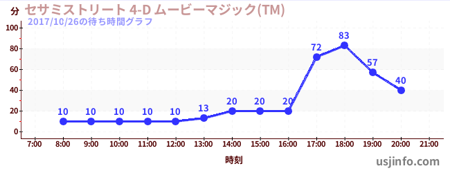 • セサミストリート 4-D ムービーマジック(TM)$B$N(B2017年10月26日の待ち時間
