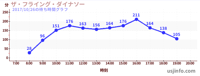 • ザ・フライング・ダイナソー$B$N(B2017年10月26日の待ち時間