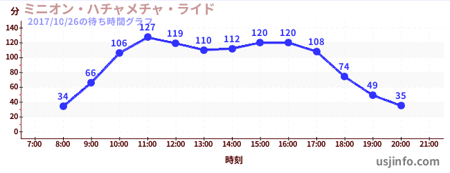 • ミニオン・ハチャメチャ・ライド$B$N(B2017年10月26日の待ち時間