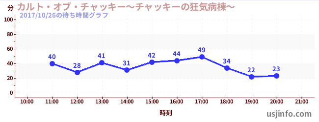 • カルト・オブ・チャッキー~チャッキーの狂気病棟~$B$N(B2017年10月26日の待ち時間