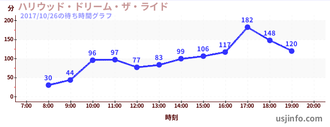 • ハリウッド・ドリーム・ザ・ライド$B$N(B2017年10月26日の待ち時間