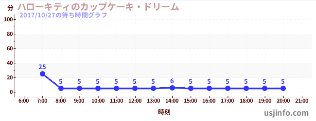 • ハローキティのカップケーキ・ドリーム$B$N(B2017年10月27日の待ち時間