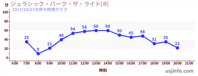 • ジュラシック・パーク・ザ・ライド(R)$B$N(B2017年10月27日の待ち時間