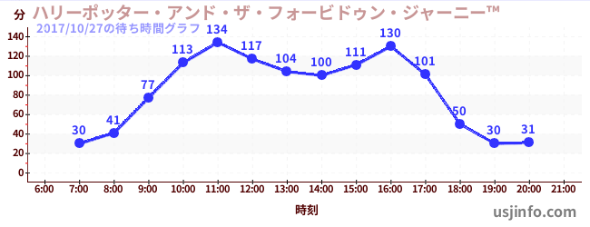 • ハリーポッター・アンド・ザ・フォービドゥン・ジャーニー™$B$N(B2017年10月27日の待ち時間