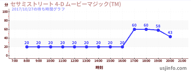 • セサミストリート 4-D ムービーマジック(TM)$B$N(B2017年10月27日の待ち時間