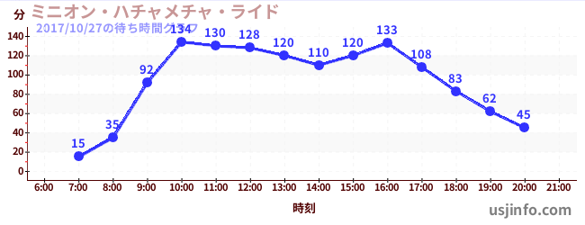 • ミニオン・ハチャメチャ・ライド$B$N(B2017年10月27日の待ち時間