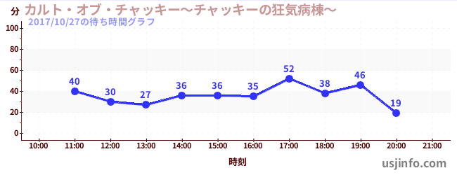 • カルト・オブ・チャッキー~チャッキーの狂気病棟~$B$N(B2017年10月27日の待ち時間