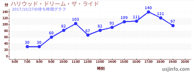 • ハリウッド・ドリーム・ザ・ライド$B$N(B2017年10月27日の待ち時間