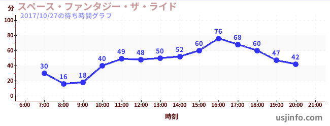 • スペース・ファンタジー・ザ・ライド$B$N(B2017年10月27日の待ち時間