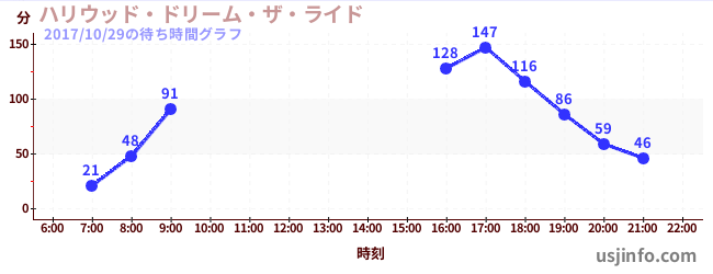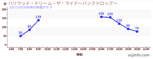 • ハリウッド・ドリーム・ザ・ライド〜バックドロップ〜$B$N(B2017年10月29日の待ち時間