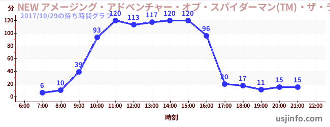 • NEW アメージング・アドベンチャー・オブ・スパイダーマン(TM)・ザ・ライド 4K3D$B$N(B2017年10月29日の待ち時間