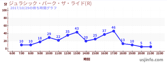 • ジュラシック・パーク・ザ・ライド(R)$B$N(B2017年10月29日の待ち時間