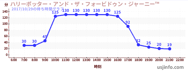 • ハリーポッター・アンド・ザ・フォービドゥン・ジャーニー™$B$N(B2017年10月29日の待ち時間