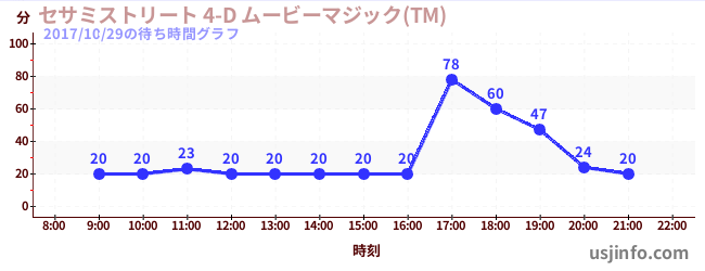 • セサミストリート 4-D ムービーマジック(TM)$B$N(B2017年10月29日の待ち時間