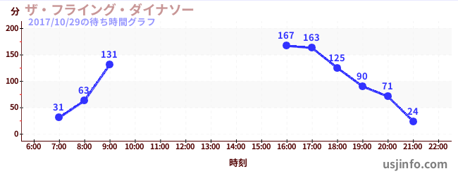 • ハリウッド・ドリーム・ザ・ライド$B$N(B2017年10月29日の待ち時間