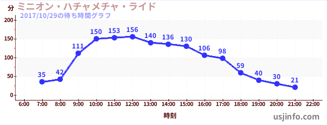 • ミニオン・ハチャメチャ・ライド$B$N(B2017年10月29日の待ち時間