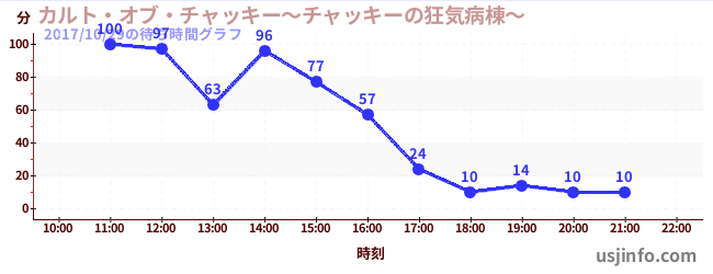 • カルト・オブ・チャッキー~チャッキーの狂気病棟~$B$N(B2017年10月29日の待ち時間