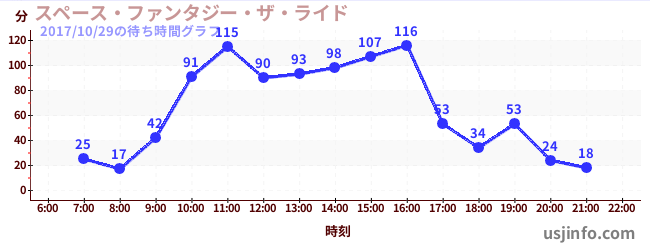 • スペース・ファンタジー・ザ・ライド$B$N(B2017年10月29日の待ち時間