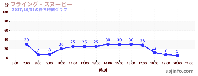 • フライング・スヌーピー$B$N(B2017年10月31日の待ち時間