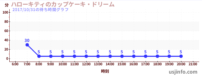 • ハローキティのカップケーキ・ドリーム$B$N(B2017年10月31日の待ち時間