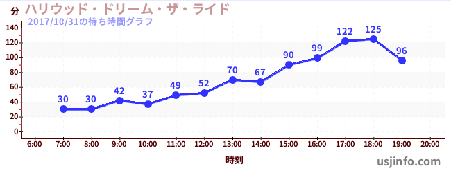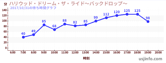 • ハリウッド・ドリーム・ザ・ライド〜バックドロップ〜$B$N(B2017年10月31日の待ち時間