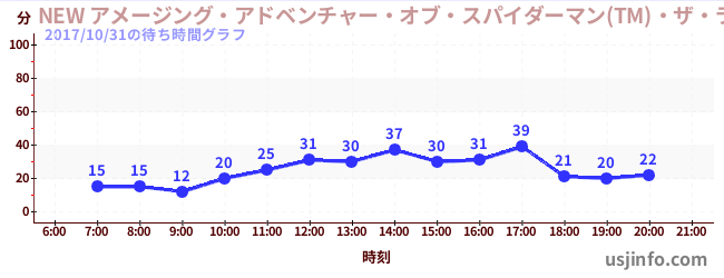 • NEW アメージング・アドベンチャー・オブ・スパイダーマン(TM)・ザ・ライド 4K3D$B$N(B2017年10月31日の待ち時間