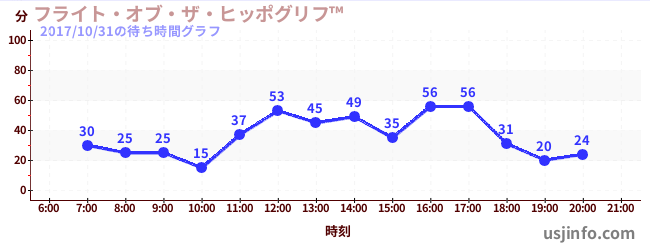 • フライト・オブ・ザ・ヒッポグリフ™$B$N(B2017年10月31日の待ち時間
