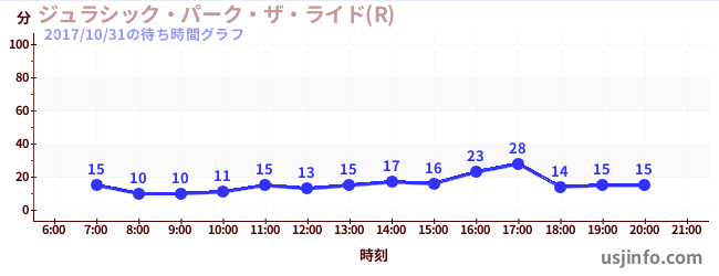• ジュラシック・パーク・ザ・ライド(R)$B$N(B2017年10月31日の待ち時間