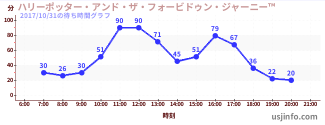 • ハリーポッター・アンド・ザ・フォービドゥン・ジャーニー™$B$N(B2017年10月31日の待ち時間