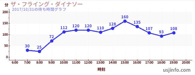 • ザ・フライング・ダイナソー$B$N(B2017年10月31日の待ち時間
