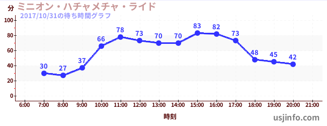• ミニオン・ハチャメチャ・ライド$B$N(B2017年10月31日の待ち時間