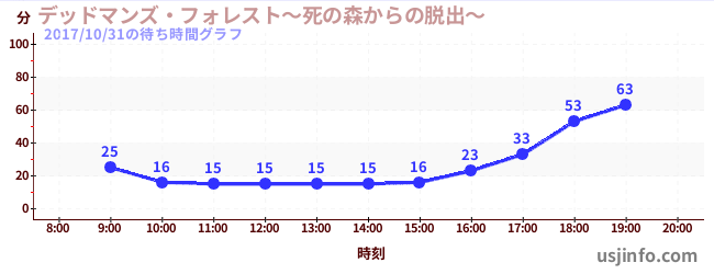 • デッドマンズ・フォレスト~死の森からの脱出~$B$N(B2017年10月31日の待ち時間