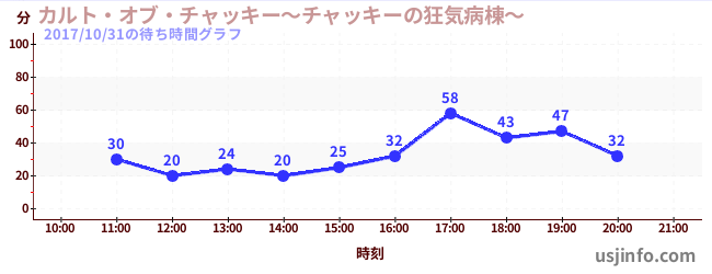 • カルト・オブ・チャッキー~チャッキーの狂気病棟~$B$N(B2017年10月31日の待ち時間