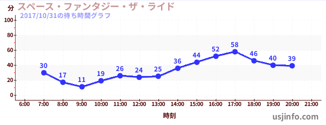 • スペース・ファンタジー・ザ・ライド$B$N(B2017年10月31日の待ち時間